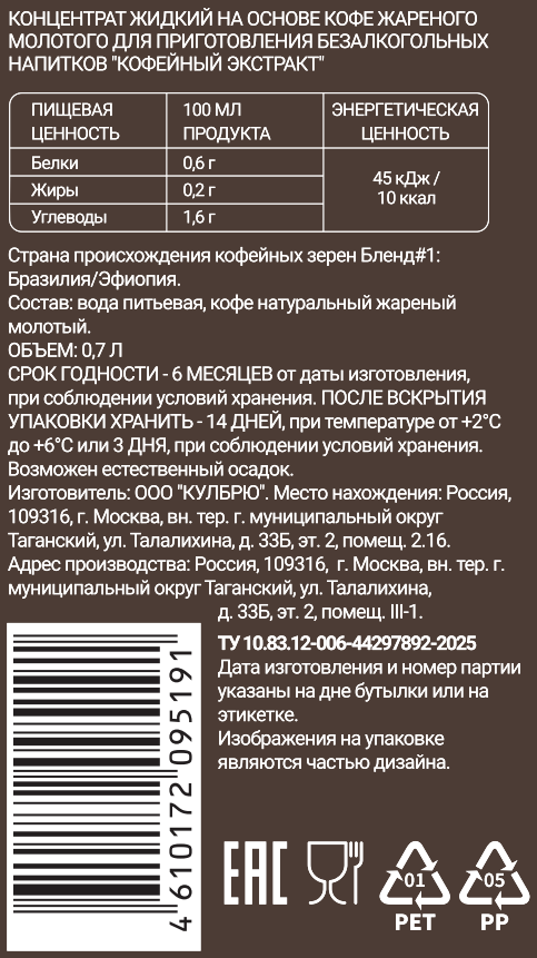 Экстракт кофейный Coolbrew Бразилия и Эфиопия, 700мл