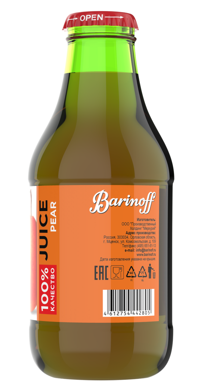 Нектар Barinoff грушевый, 250мл х 12шт - грушевый восстановленный сок с мякотью, созданный из отборных спелых фруктов, без сахара и ароматизаторов. Сок может быть подан со льдом или без него и входить в состав коктейлей. Подходит для употребления в течение всего дня. Также он может составить компанию десертам.