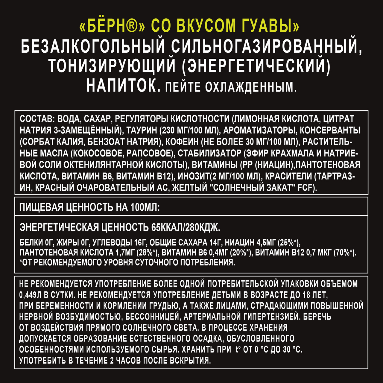 Погрузись в мир экзотических фруктов вместе с новымBurn со вкусом гуавы! Освежающий и в меру сладкий вкус гуавы, в купе с мощным энергетическим зарядом Burn, привнесет ощущение праздника и беззаботности в ваш день, позволяя наслаждаться яркими моментами жизни!