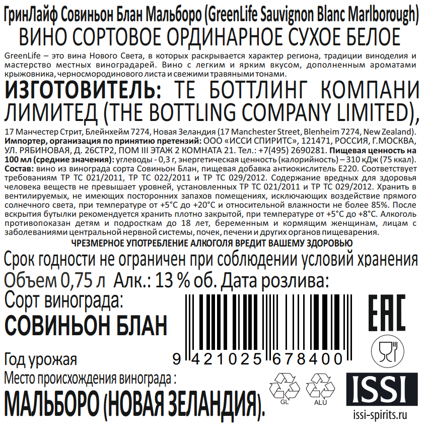 Французская компания Les Grands Chais de France расширила свой ассортимент линейкой вин "GreenLife", изготовленных компанией Isabel Estate в Новой Зеландии. В ней представлены свежие фруктовые вина, изготовленные из винограда, выращенного в регионе Мальборо. "GreenLife" Sauvignon Blanc — белое сухое вино, во вкусе и аромате которого преобладают характерные для Совиньон Блан из Мальборо оттенки тропических фруктов (манго, маракуйи, гуавы). По окончании сбора урожая плоды подвергаются прессованию целыми гроздьями с последующей ферментацией в стальных резервуарах. Выдерживается вино 3 месяца в чанах из нержавеющей стали. Вино отлично сочетается с морепродуктами, рыбой, курицей, суши, летними салатами, козьим сыром и овощами. Вегетационный период 2022 года начался с сильных дождей, что ознаменовало конец трехлетней засухи в Мальборо. Период тепла в начале декабря дал долгожданное и лучшее, чем обычно, завязывание плодов. В конце февраля несколько сильных дождей восполнили пониженный уровень влажности почвы. В течение следующих двух недель наблюдались прохладные дни и ночи, что позволило сохранить кислотность высокой. Сбор урожая совпал с пиком вспышки Omicron в Новой Зеландии. Однако благодаря отличной командной работе урожай был собран в момент оптимальной зрелости ягод с сохранением яркой кислотности и концентрированного фруктового вкуса. Les Grands Chais de France (GСF) — это группа компаний, основанная в Петерсбахе в 1979 году человеком по имени Джозеф Хэлфриш (Joseph Helfrich). Основное месторасположение компаний — Vosges du Nord (на Юге Франции). На сегодняшний день Ле Гран Ше де Франс — крупная и успешная компания, занимающаяся производством качественного французского вина и нацеленная, в основном, на экспорт (более 70% продукции). GСF владеет виноградниками во многих винодельческих регионах страны — Эльзас, Долина Луары, Бордо, Божоле и Лангедок-Руссильон.