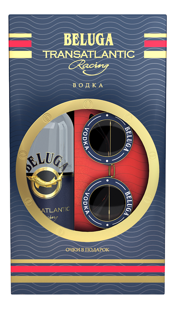Водка Beluga Transatlantic + очки в подарочной упаковке, 0.7л