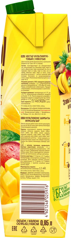 Нектар Дары Кубани мультифрукт с мякотью, 950мл