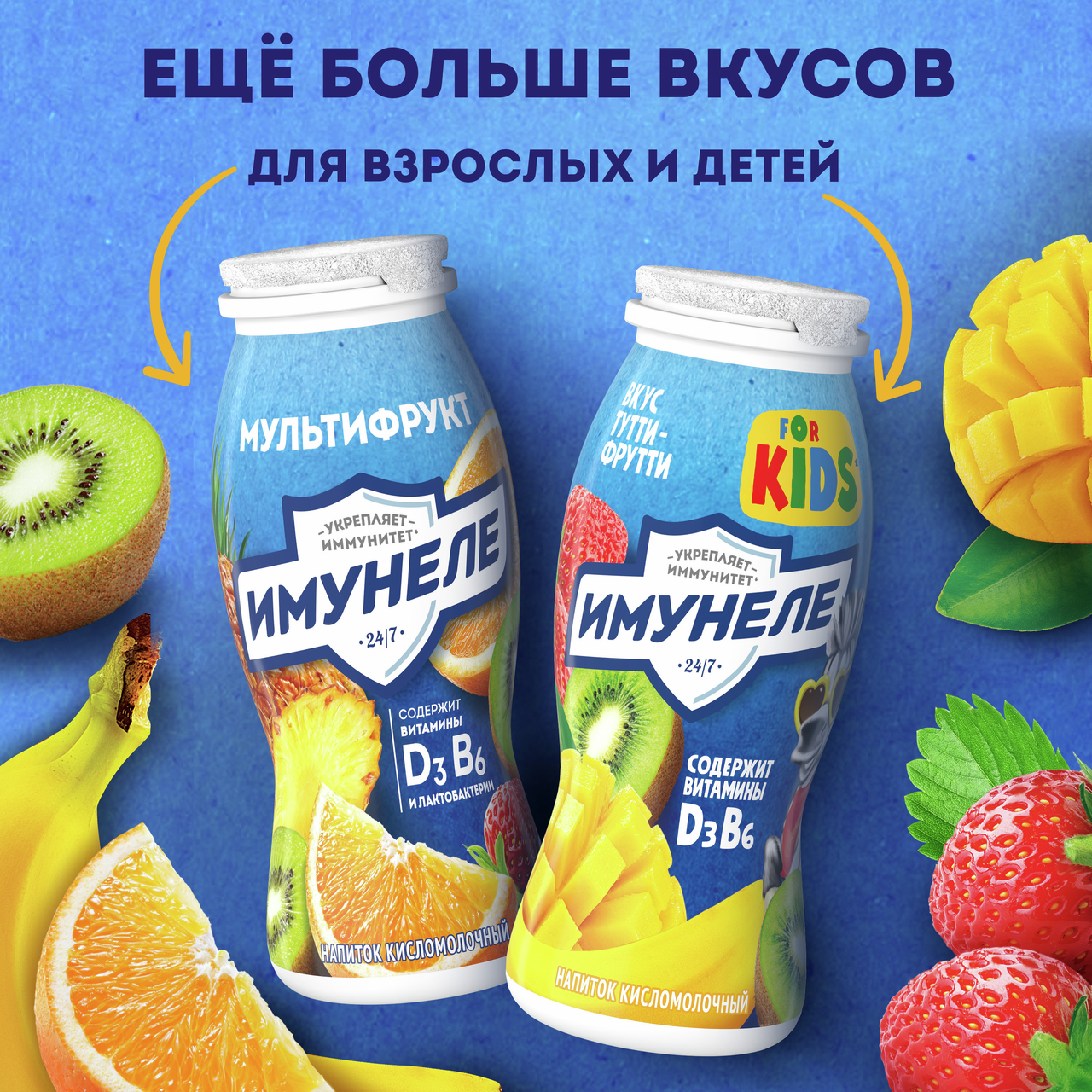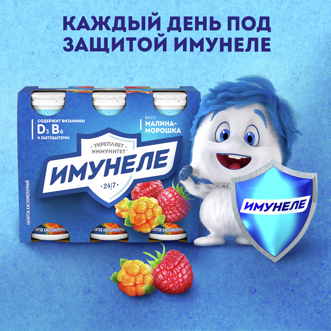 Это функциональный продукт с ягодным миксом, в состав которого входит уникальный сбалансированный комплекс полезных лактобактерий, витаминов и минералов. Пробиотик L.Casei нормализует микрофлору кишечника и защищает ее от микробов. L.Rhamnosus дополняет его действие, укрепляя иммунитет. Витамины E и D3 помогают организму сопротивляться инфекциям и препятствуют старению иммунной системы. Малина и морошка, как и цинк, противостоят простудам, а йод придает сил. Институт питания РАМН рекомендует Имунеле для ежедневного применения, особенно в холодное время года.