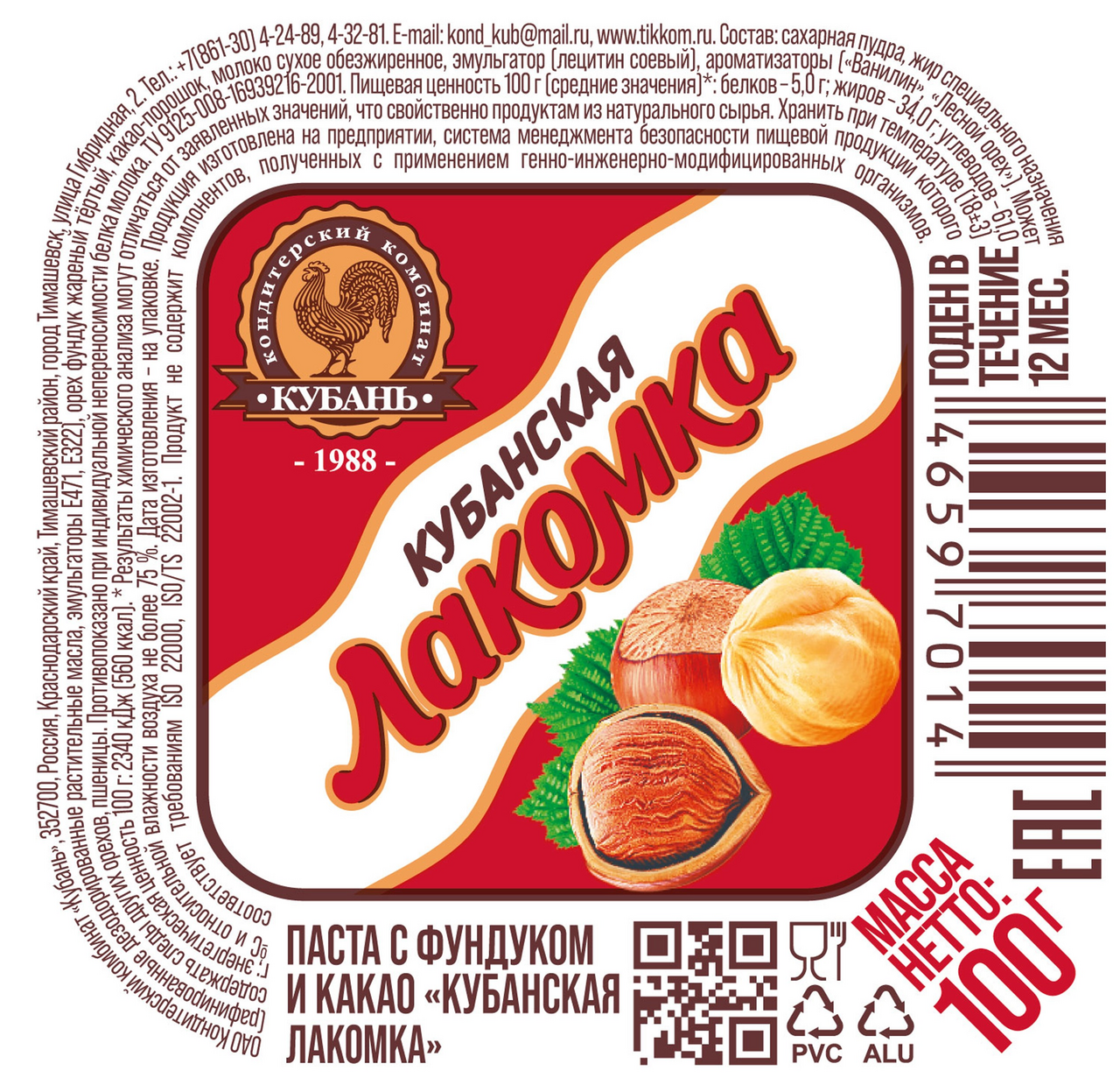 Паста Кондитерский Комбинат Кубань с фундуком и какао, 100г