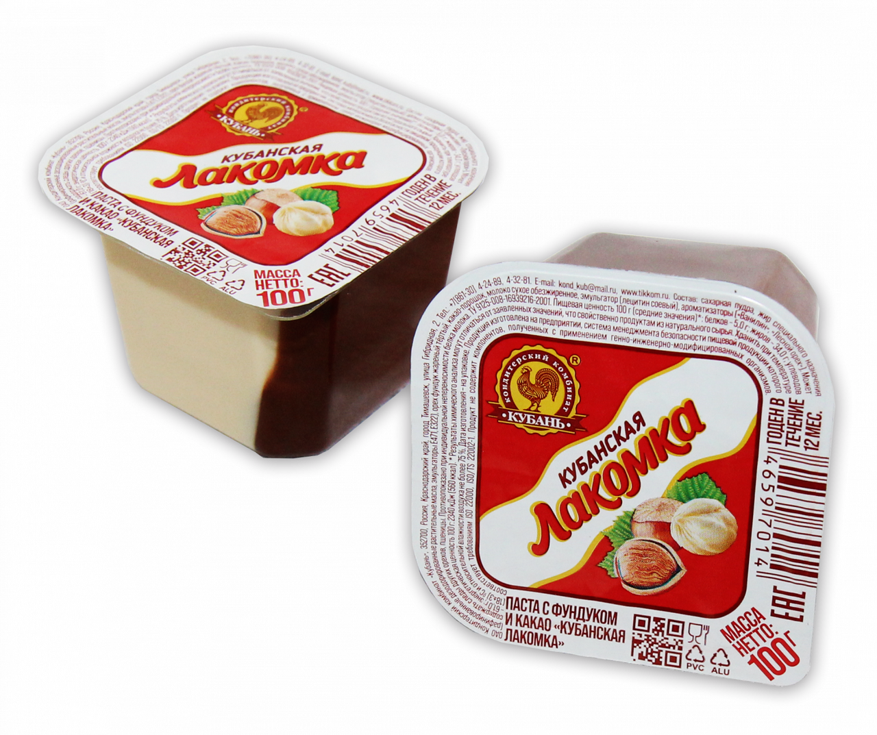 Паста Кондитерский Комбинат Кубань с фундуком и какао, 100г - двухслойная паста состоит из какао крема с фундуком и молочного крема, которые превосходно сочетаются друг с другом. Прекрасный завтрак для взрослых и детей. В порционной упаковке.