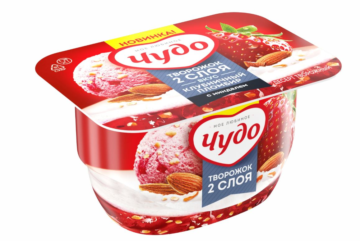 Десерт творожный Чудо клубника-пломбир-миндаль 4.3%, 100г