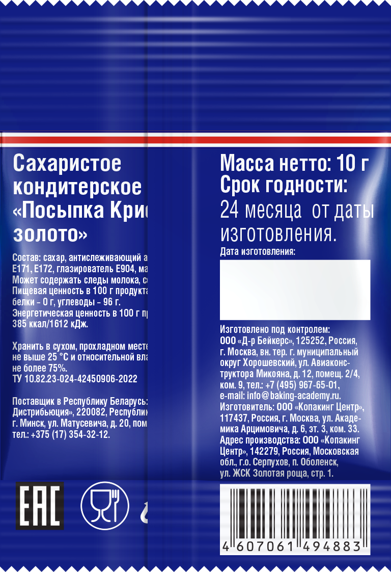 Посыпка сахарная Dr.Bakers Кристаллы золото, 10г
