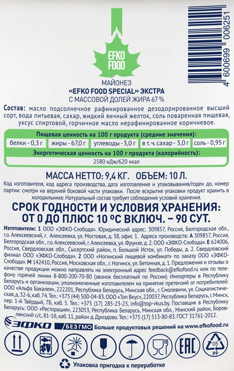 Майонез Efko Food Special Экстра 67%, 10л