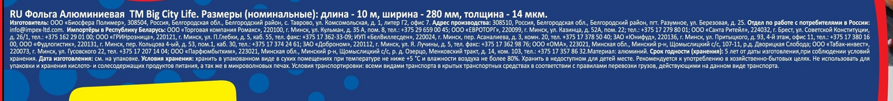 Фольга Big City Max алюминиевая 14мкм, 29см х 10м