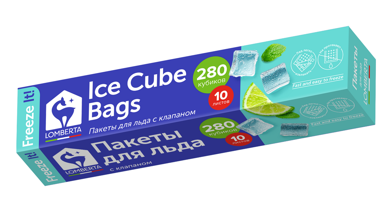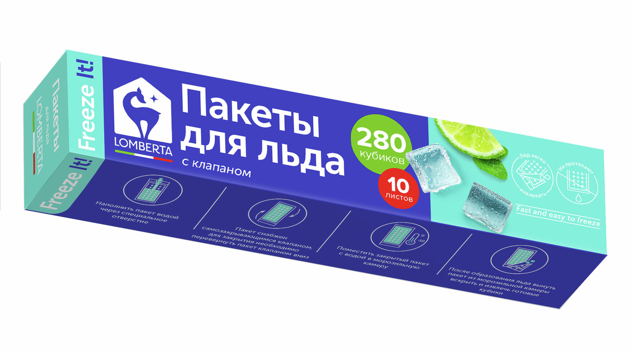 Пакеты Lomberta для льда, 10 шт. обладают высокой прочностью и износостойкостью, что гарантирует надежную защиту содержимого от проникновения воздуха и блокирует неприятные запахи. Они изготовлены из материала, который не содержит вредных веществ и абсолютно безопасен для замороженных продуктов. Кроме того, они обладают водонепроницаемыми свойствами, что помогает сохранять качество льда и предотвращает протекание воды. Применение таких пакетов — это простой и удобный способ сделать лед. Просто налейте воду внутрь, удалите избыточный воздух и закройте плотно. Затем поместите пакеты в морозилку.