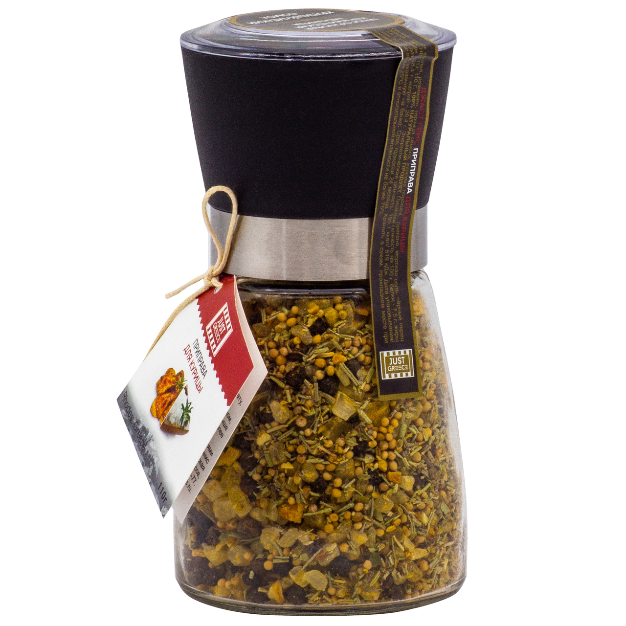 Приправа для курицы JustGreece - разработана на основе традиционных рецептов греческой кухни. Специальная смесь пряностей, трав и сушеных овощей придаст блюдам из курицы или индейки неповторимый вкус и аромат. Рекомендации: смелите смесь на курицу непосредственно перед приготовлением. Также рекомендуется для натирания (маринования) курицы за 20-30 минут перед жаркой, тушением или запеканием.