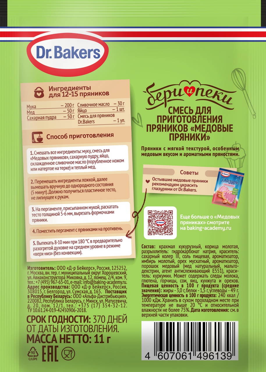 Смесь пищевая Dr.Bakers Медовые пряники, 11г