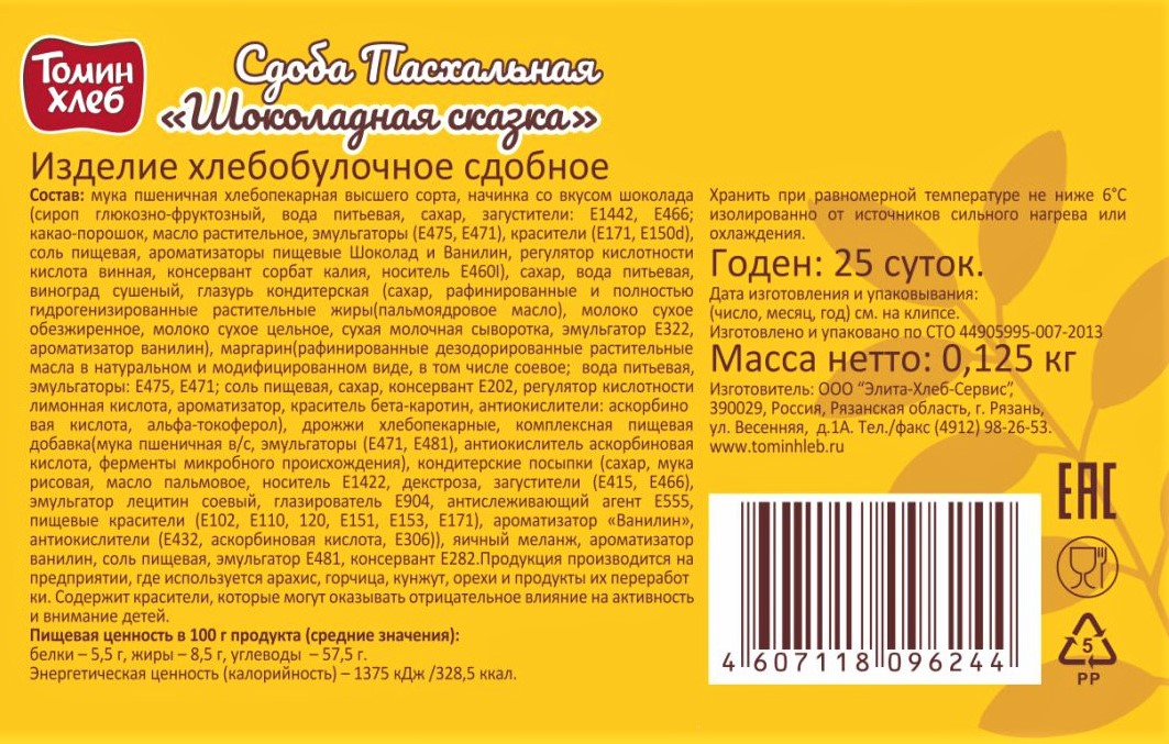 Сдоба Пасхальная Томин хлеб Шоколадная сказка, 125г
