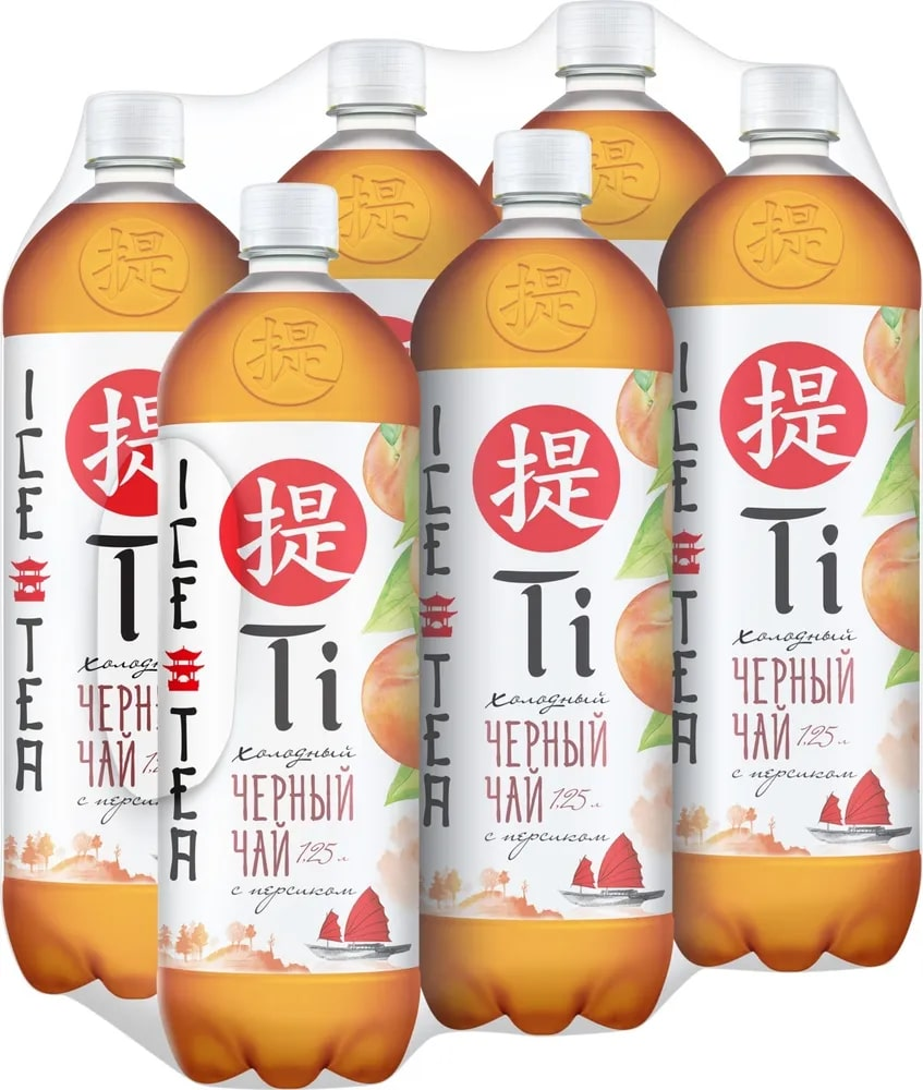 Холодный чай Ti черный со вкусом персика, 1.25л x 6 шт