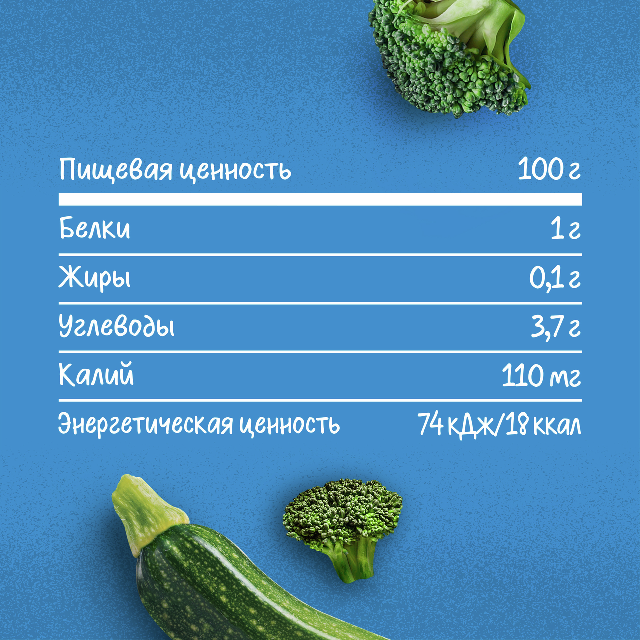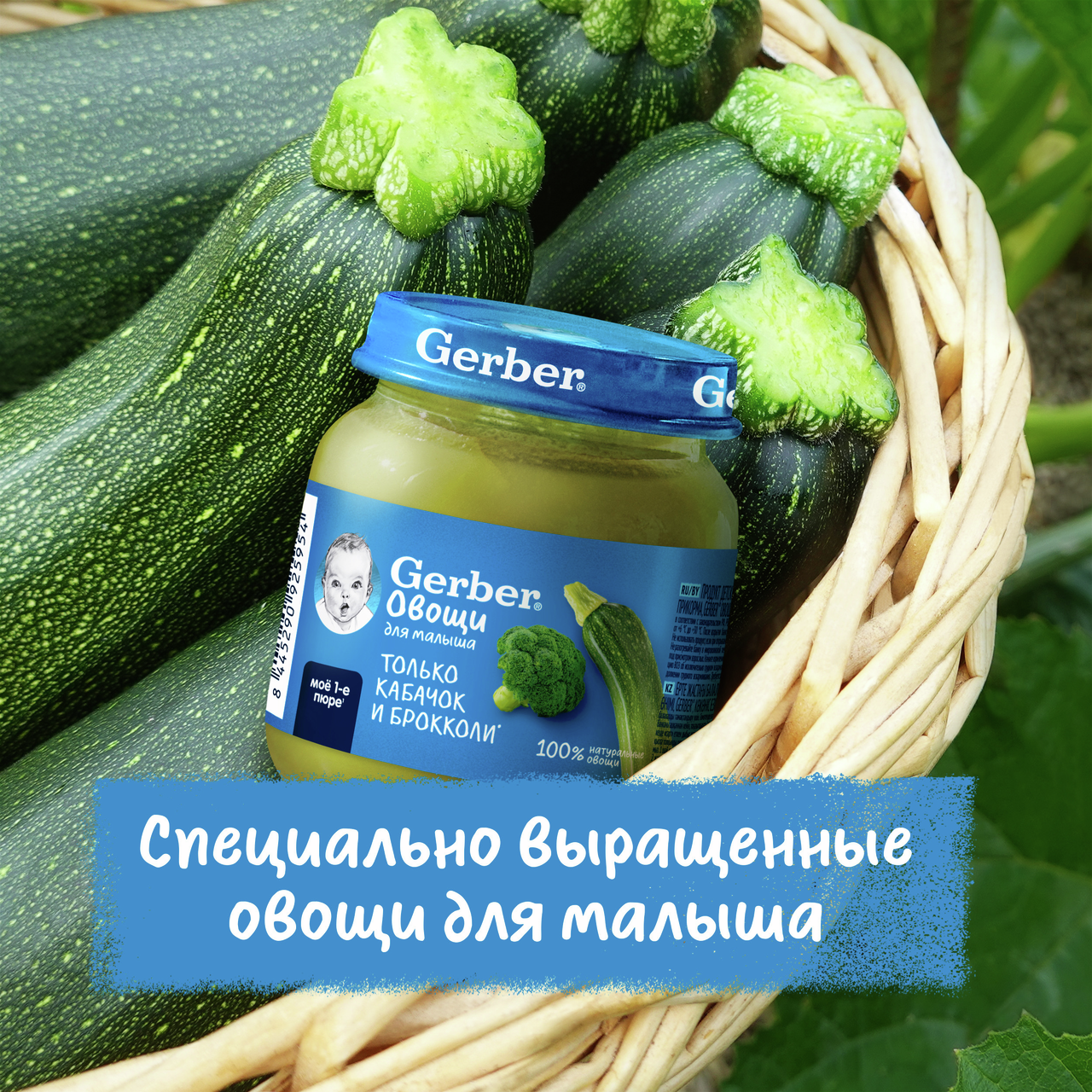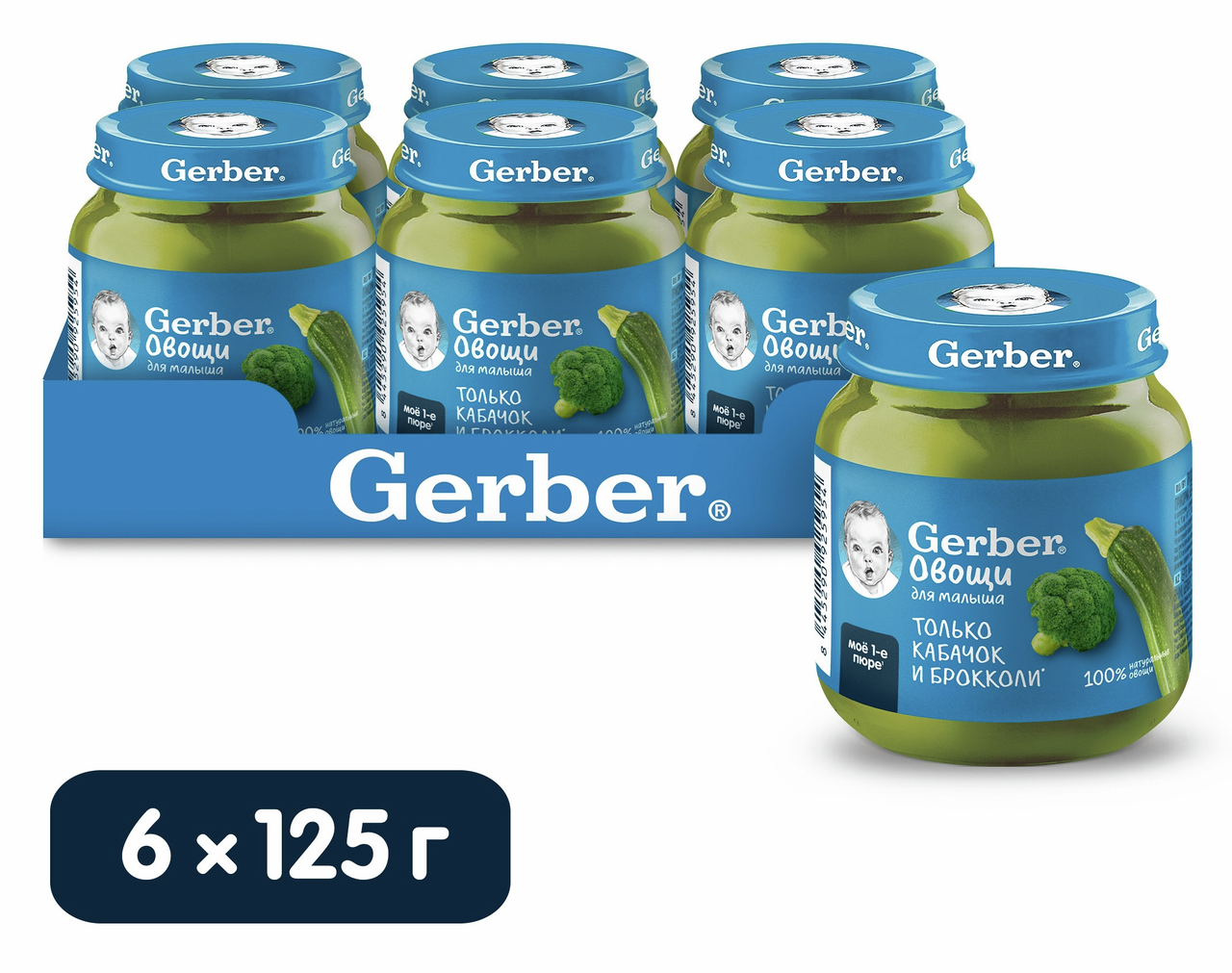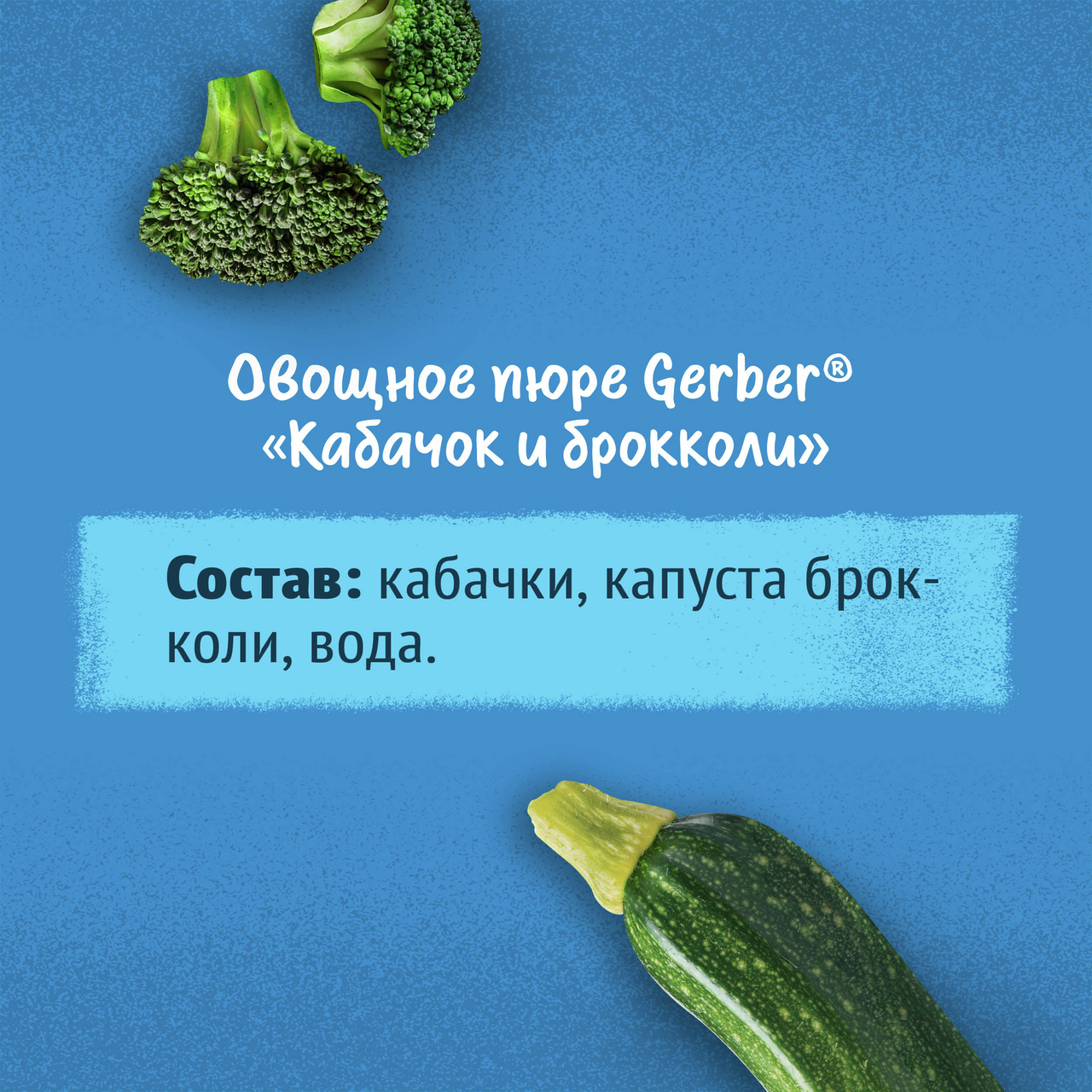 Продукт детского питания для детей раннего возраста, продукт прикорма, овощное пюре Кабачок и Брокколи. Для питания детей с 5 месяцев. Гомогенизированное. Стерилизованное. Готово к употреблению. Мы предъявляем самые строгие требования к качеству наших продуктов, что позволяет нам выбрать лучшие ингредиенты, которые станут пюре Gerber(r): Стандарты качества Gerber по многим параметрам превосходит государственные стандарты качества, принятые в разных странах Наши продукты проходят более 120 проверок на качество на всех этапах производства Фрукты и овощи выращены на полях проверенных поставщиков Ведь здоровье Вашего малыша - наш главный приоритет. Только 100% натуральные овощи. Любовь и забота в каждой ложечке. Изготовлено без использования генетически модифицированных ингредиентов, искусственных консервантов, красителей и ароматизаторов. Без добавления крахмала, соли и сахара. Важное примечание: идеальной пищей для грудного ребенка является молоко матери. Всемирная организация здравоохранения рекомендует исключительно грудное вскармливание в первые шесть месяцев и последующее введение прикорма при продолжении грудного вскармливания. Компания Нестле поддерживает данную рекомендацию. Для принятия решения о сроках и способе введения данного продукта в рацион ребенка необходима консультация специалиста.