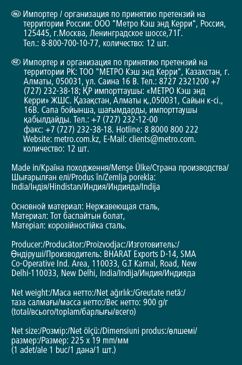 Благодаря стильному и современному дизайну, столовые приборы MPRO Glassia впишутся на любой обеденный или банкетный стол как дома, так и в ресторане. Материал, из которого изготовлены столовые приборы — нержавеющая сталь, — не померкнет и не потускнеет со временем, не поддастся ржавчине и налету и даже через сотни применений останется таким же, как изначально. Имеет изящную форму и высокопрочное лезвие из нержавеющей стали. Кухонный нож подойдет как для новичка, так и для настоящего профессионала.