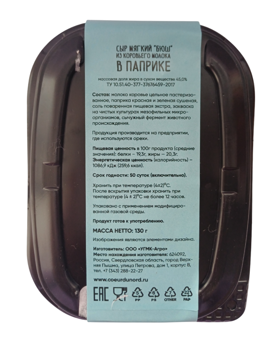 Сыр Coeur du Nord из коровьего молока бюш в паприке 45%, 130г