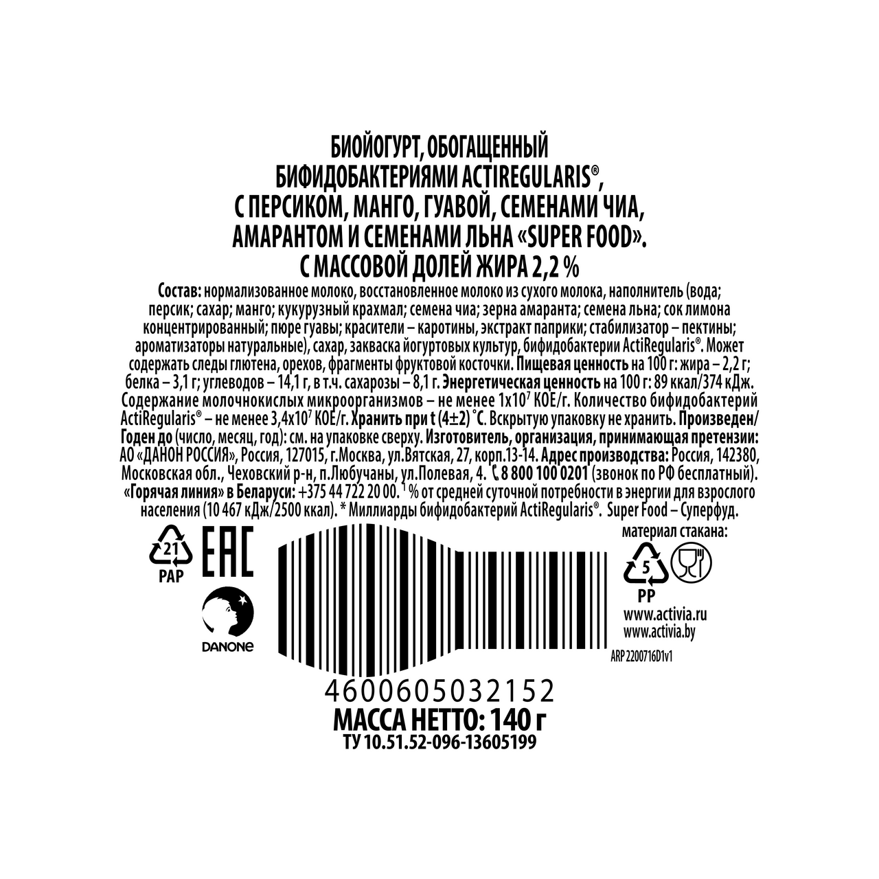 Йогурт Активиа персик-манго-гуава-лен 2.2%, 140г
