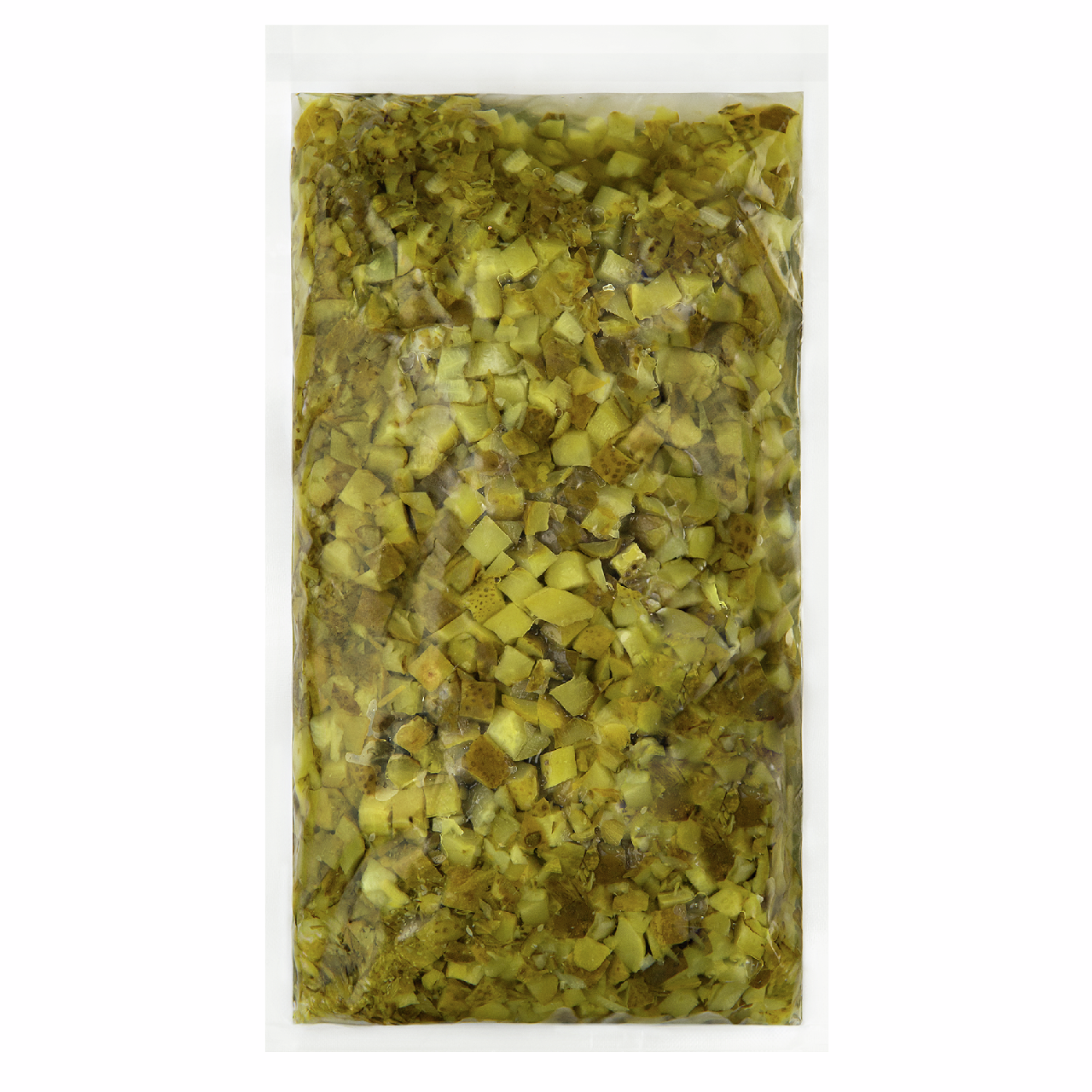 Маринованные огурцы, нарезанные кубиками, идеально подойдут для приготовления разнообразных кулинарных блюд. Этот продукт создан для тех, кто ценит удобство и качество. Огурцы прошли тщательный процесс маринования, что позволяет им сохранять насыщенный вкус и хрустящую текстуру даже в течение длительного времени. Специальная нарезка кубиками делает их использование особенно удобным - будь то для быстрого добавления в салаты, окрошки, сэндвичи или другие гастрономические изыски.
