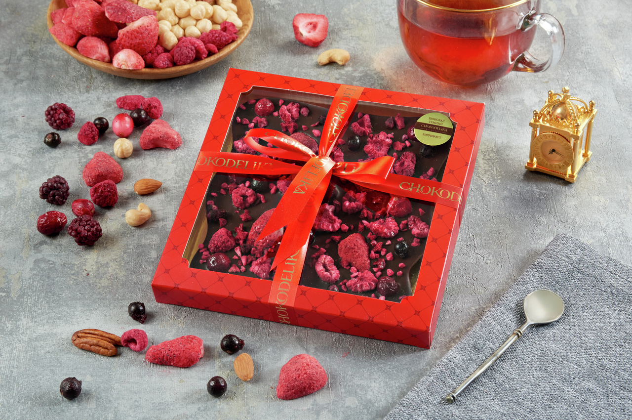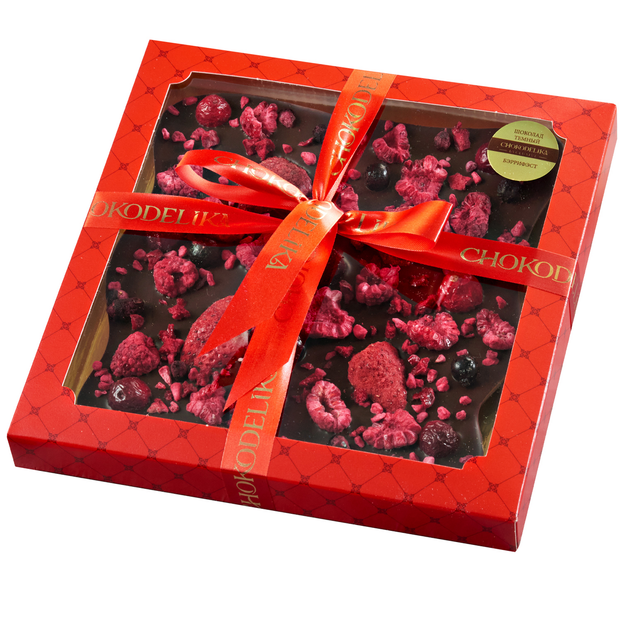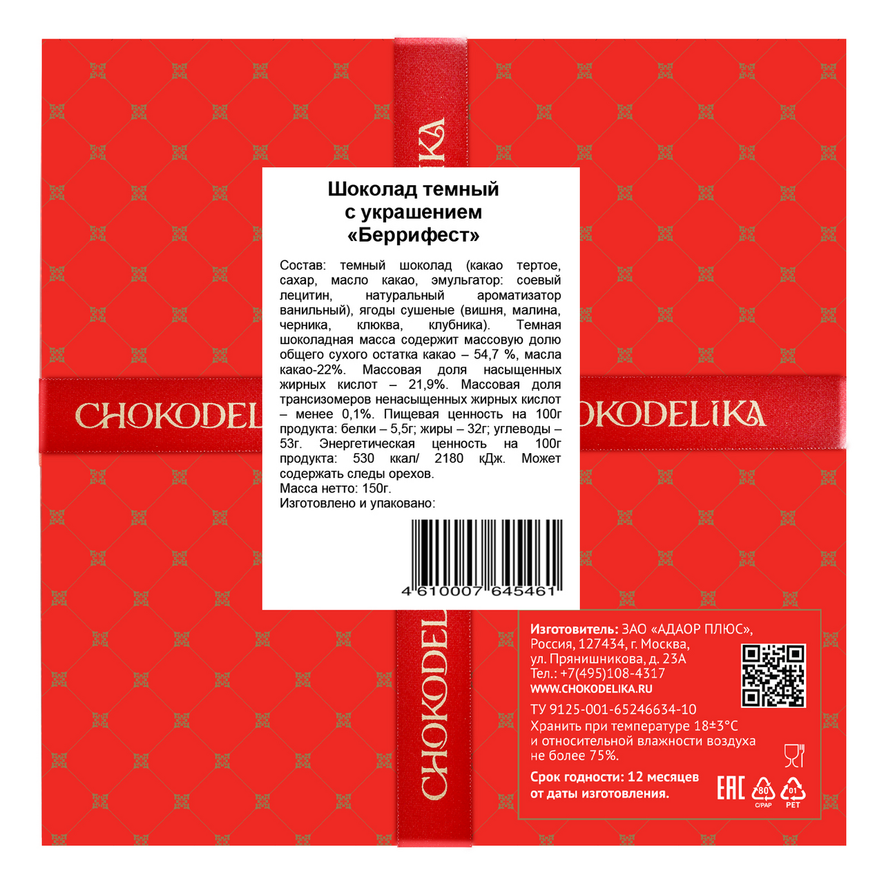 Шоколад Chokodelika темный с украшением Беррифест в коробке с ленточкой, 150г