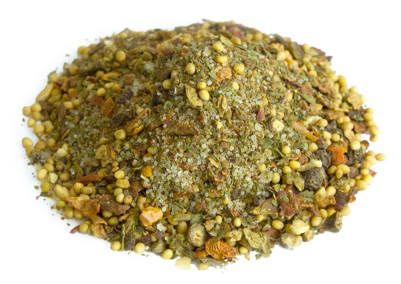 Пряности семя горчицы, перец чёрный, перец красный, перец душистый, лавровый лист, соль, овощи сушёные паприка красная, паприка зелёная, чеснок, сахар, петрушка.