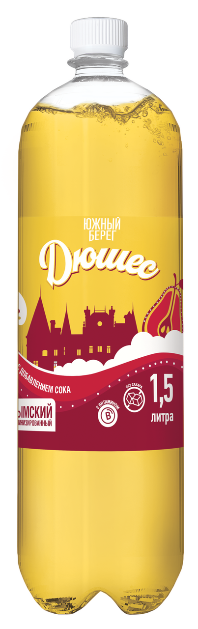 Напиток Южный берег Дюшес газированный, 1.5л x 6 шт - витаминный̆ напиток, созданный̆ на основе натурального сока десертных сортов груши с нежной̆ и сочной̆ мякотью. Сбалансированный̆ комплекс витаминов принесет дополнительную пользу всем любителям вкусных напитков.
