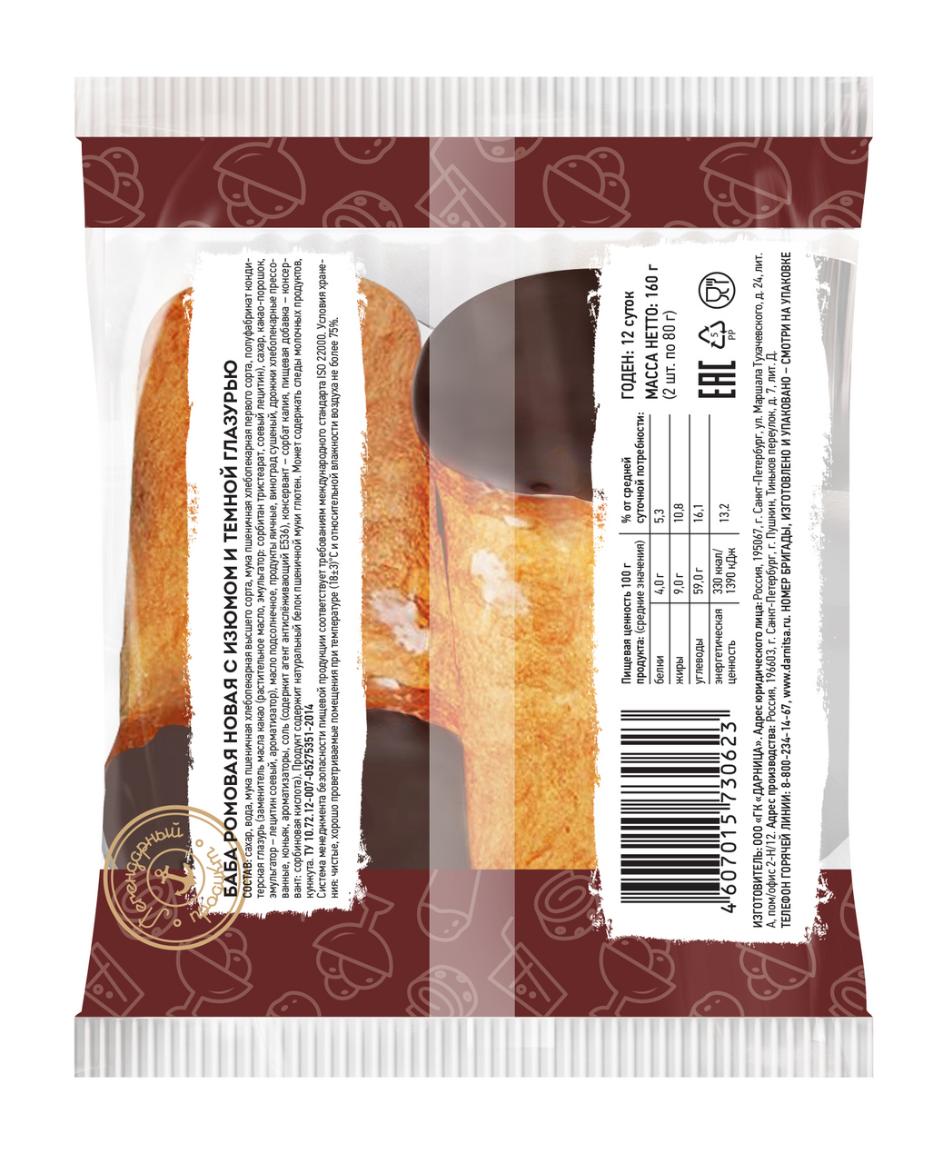 Мука пшеничная хлебопекарная высшего сорта, сахар, вода, полуфабрикат кондитерская глазурь (заменитель масла какао (растительное масло, эмульгатор сорбитан тристеарат, соевый лецитин), сахар, какао-порошок, эмульгатор – лецитин соевый, ароматизатор), маргарин (масла растительные, вода, эмульгаторы: эфиры полиглицерина и жирных кислот, моно- и диглицериды жирных кислот, соль, сахар, консервант сорбат калия, регулятор кислотности кислота лимонная, ароматизатор, краситель бета-каротин, антиокислители: аскорбиновая кислота, альфа-токоферол), продукты яичные, виноград сушеный, дрожжи хлебопекарные прессованные, коньяк, ароматизаторы, соль, консервант сорбат калия, пищевая добавка - консервант сорбиновая кислота).