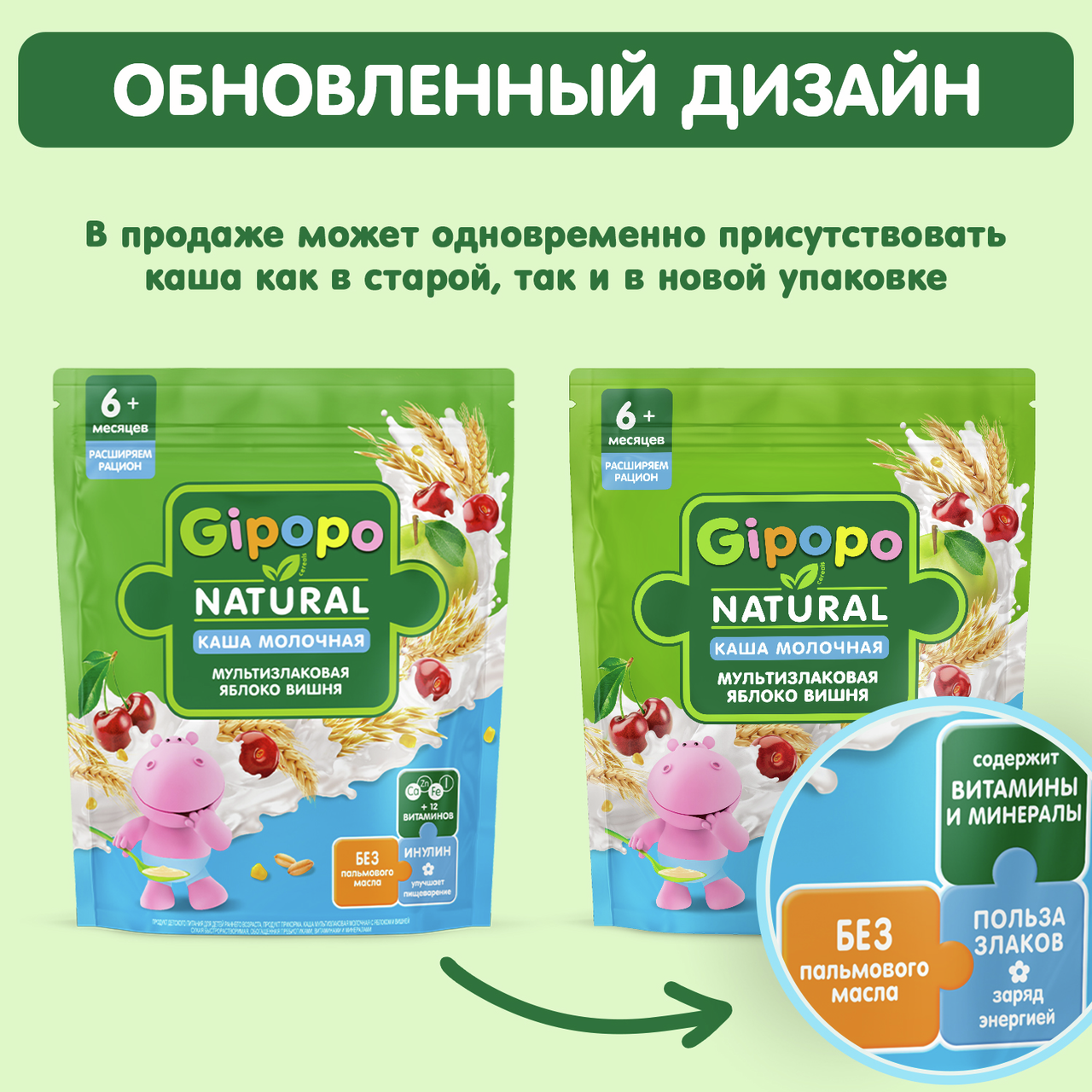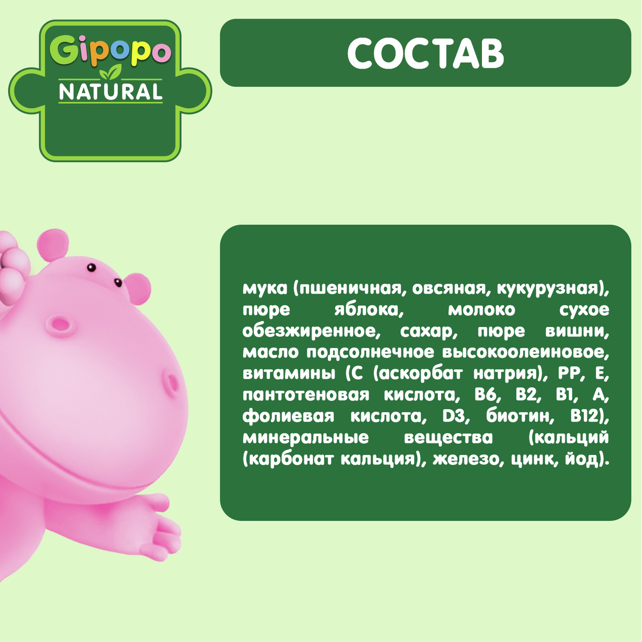 Каша сухая детская Gipopo Мультизлаковая молочная Яблоко и вишня с 6 месяцев, 170г