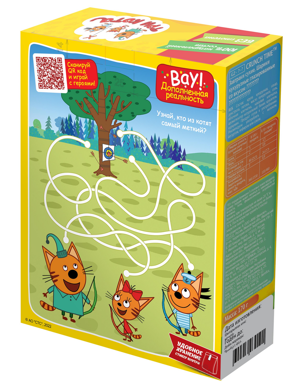 Готовый завтрак Crunch Time Три кота Кукурузные шарики с шоколадным вкусом, 170г