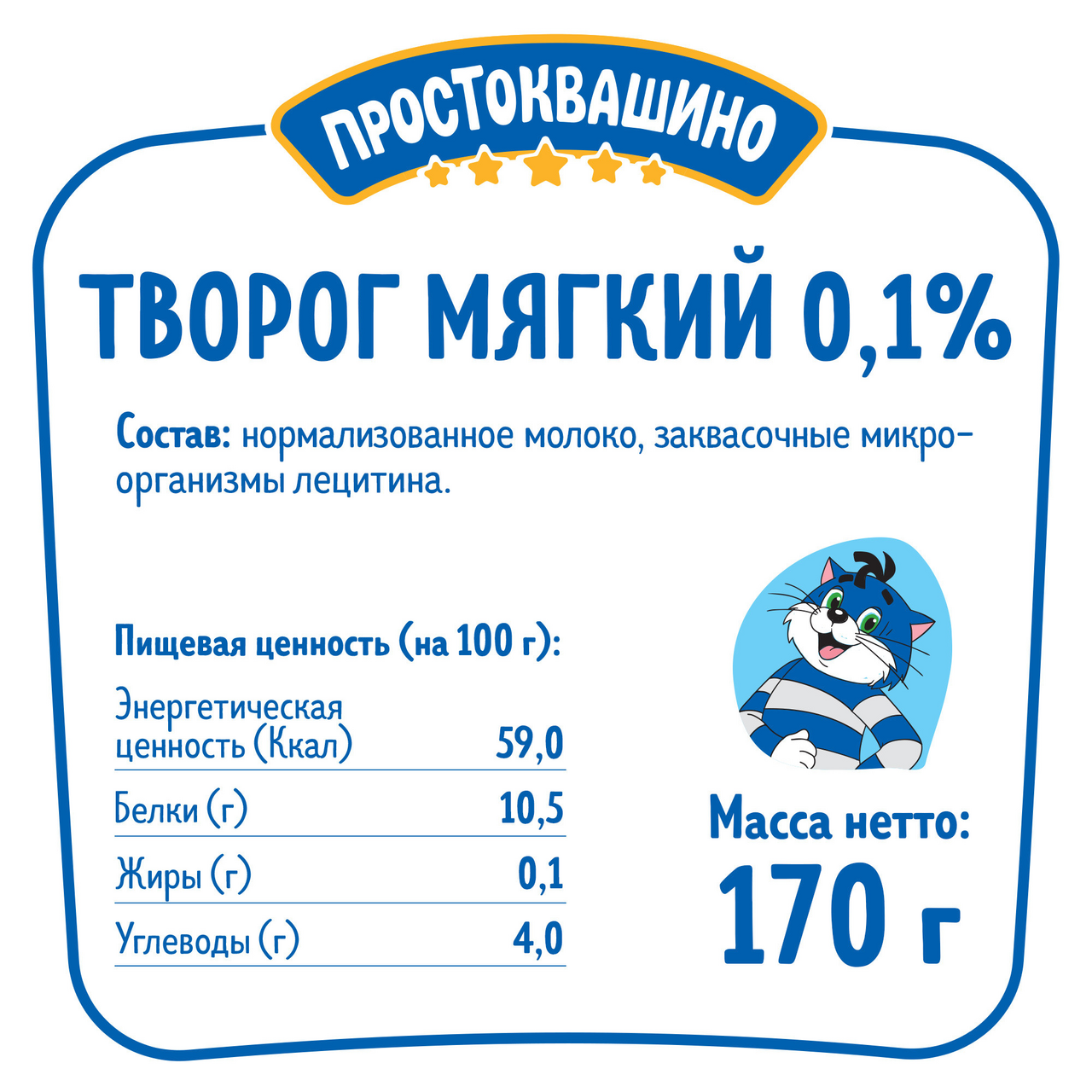 Творог мягкий Простоквашино 0.1%, 170г