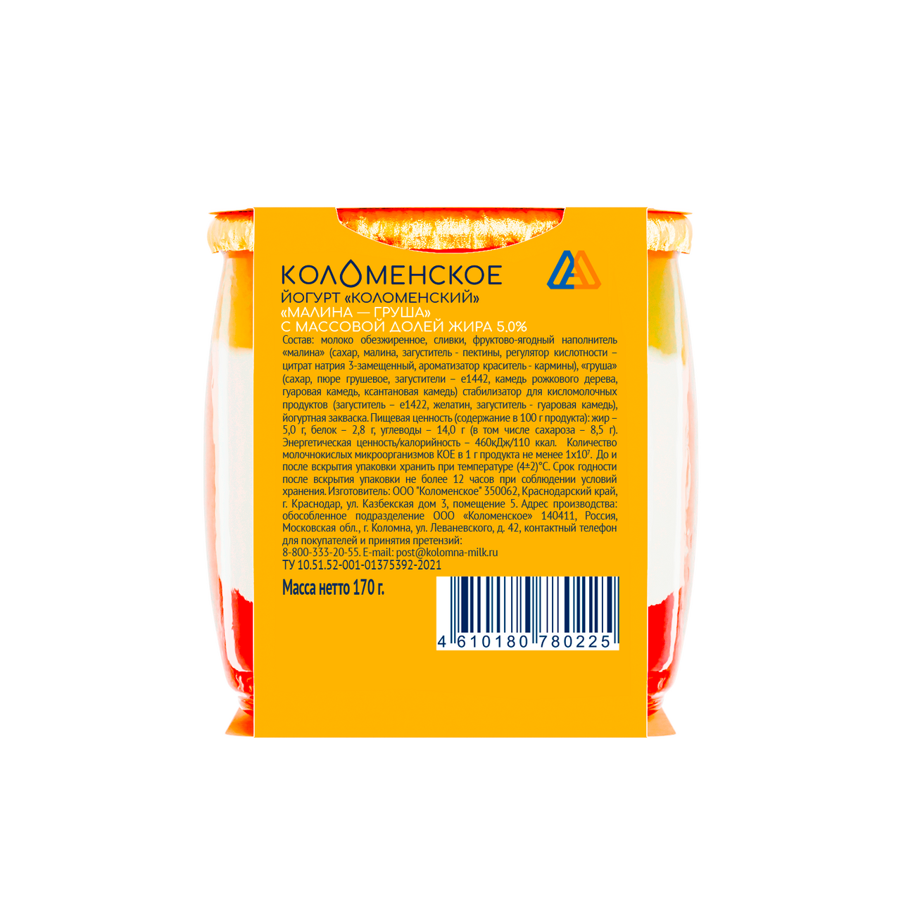 Йогурт Коломенский приготовлен из молока, упакован в удобную стеклянную баночку. Верхний и нижний слои - фруктово-ягодные наполнители (малина и груша), средний слой - нежнейший йогурт. Можно употребить не перемешивая или перемешать слои для получения однородной массы. Все прозрачно: натуральность, многослойность и качество.