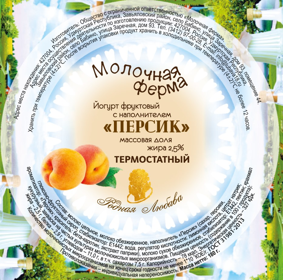 Йогурт Родная Любава термостатный персик 2.5%, 180г