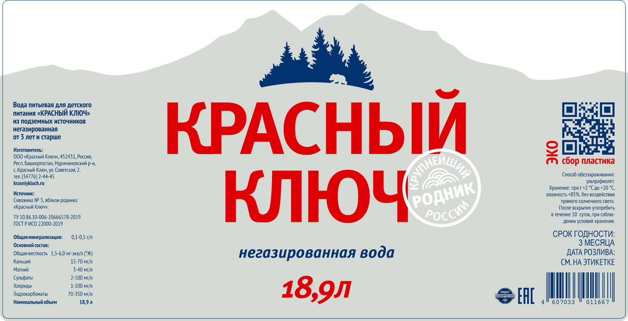 Вода питьевая для детского питания Красный Ключ из подземных источников негазированная от 3 лет и старше. Разливается непосредственно у источника, без изменения природного состава. Подойдет для использования при выезде на природу.