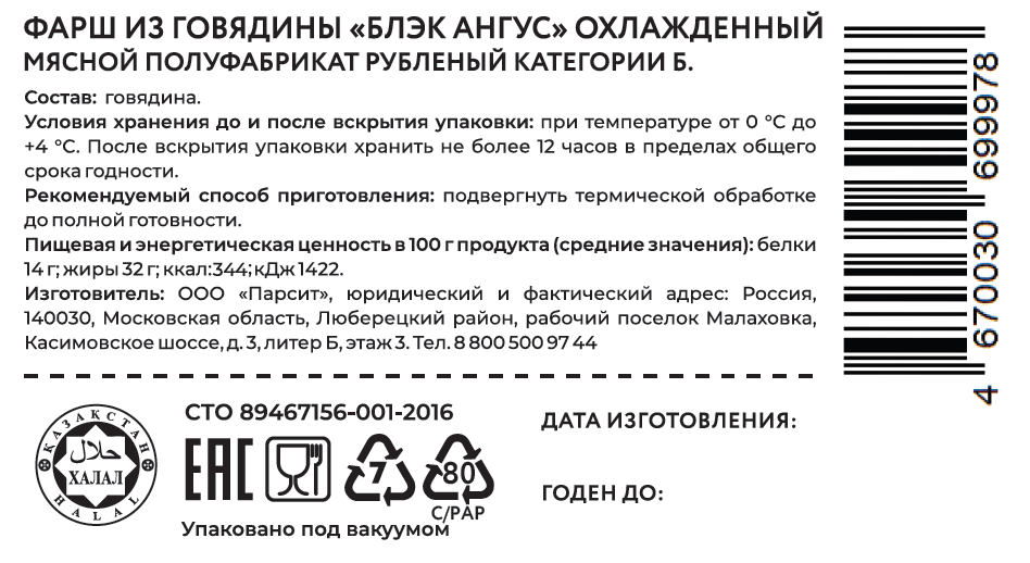 Фарш говяжий Мясо есть! Халяль Black Angus охлажденный, 1кг
