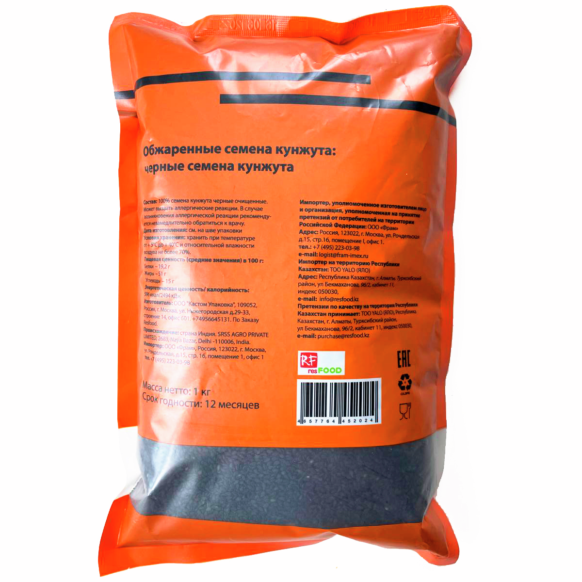 Семена кунжута Hansey черные обжаренные, 1кг