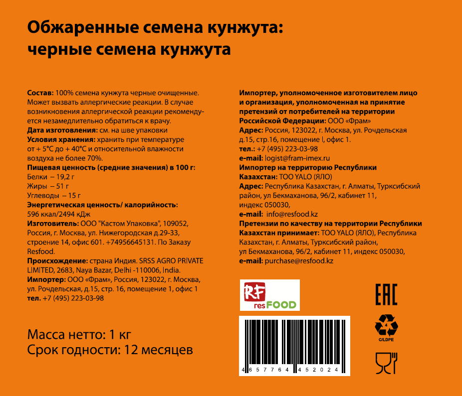 100% семена кунжута черные очищенные.