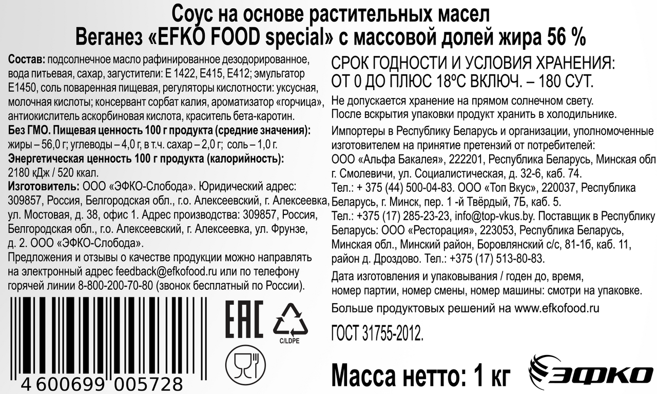 Соус Efko Food Special Веганез ГОСТ 56%, 1кг
