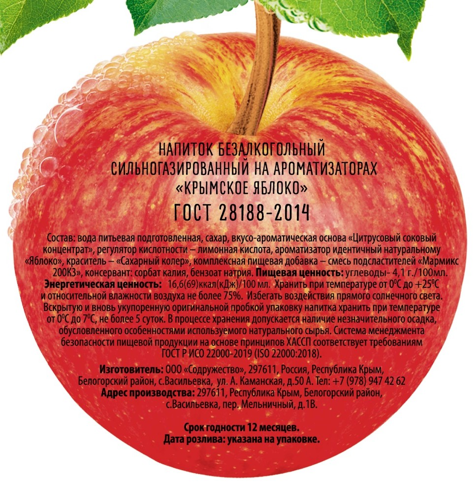 Напиток безалкогольный сильногазированный с содержанием натурального сока. Имеет ярко выраженный вкус и насыщенный аромат свежевыжатого яблочного сока.