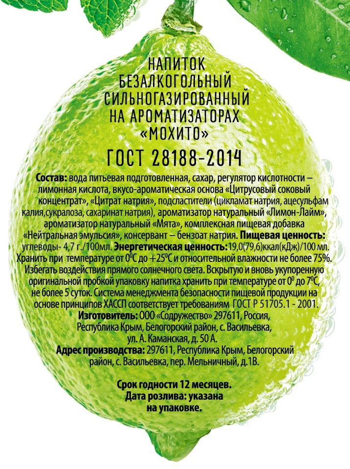 Напиток Жемчужина Крыма Мохито газированный, 1л x 6 шт - напиток безалкогольный сильногазированный с содержанием натурального сока. Идеально подходит для приготовления охладительных коктейлей. Мягкий вкус и аромат лайма подарят истинную прохладу и свежесть. Мята, входящая в состав, собрана в экологически чистых местах полуострова Крыма. Вкус настоящего Мохито понравится как детям, так и взрослым.