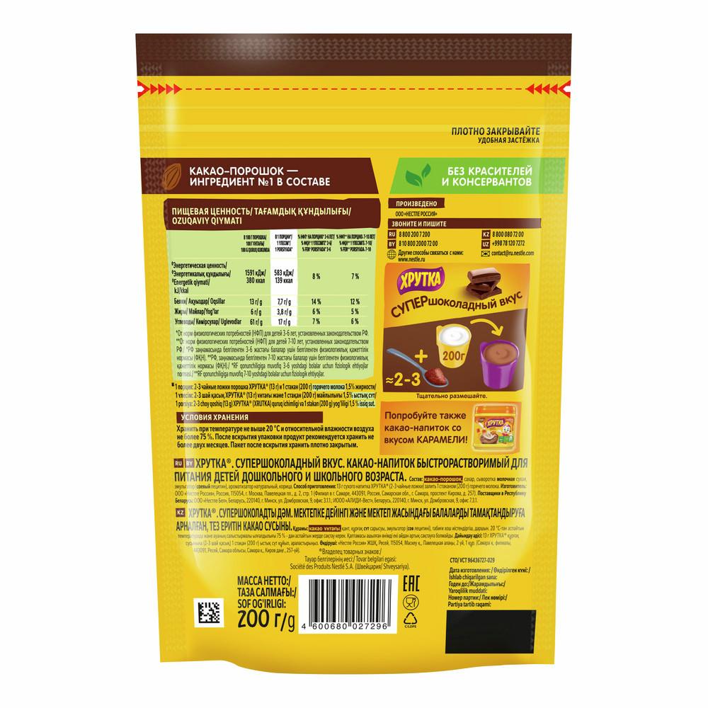 Какао-напиток Хрутка Супершоколадный вкус быстрорастворимый, 200г