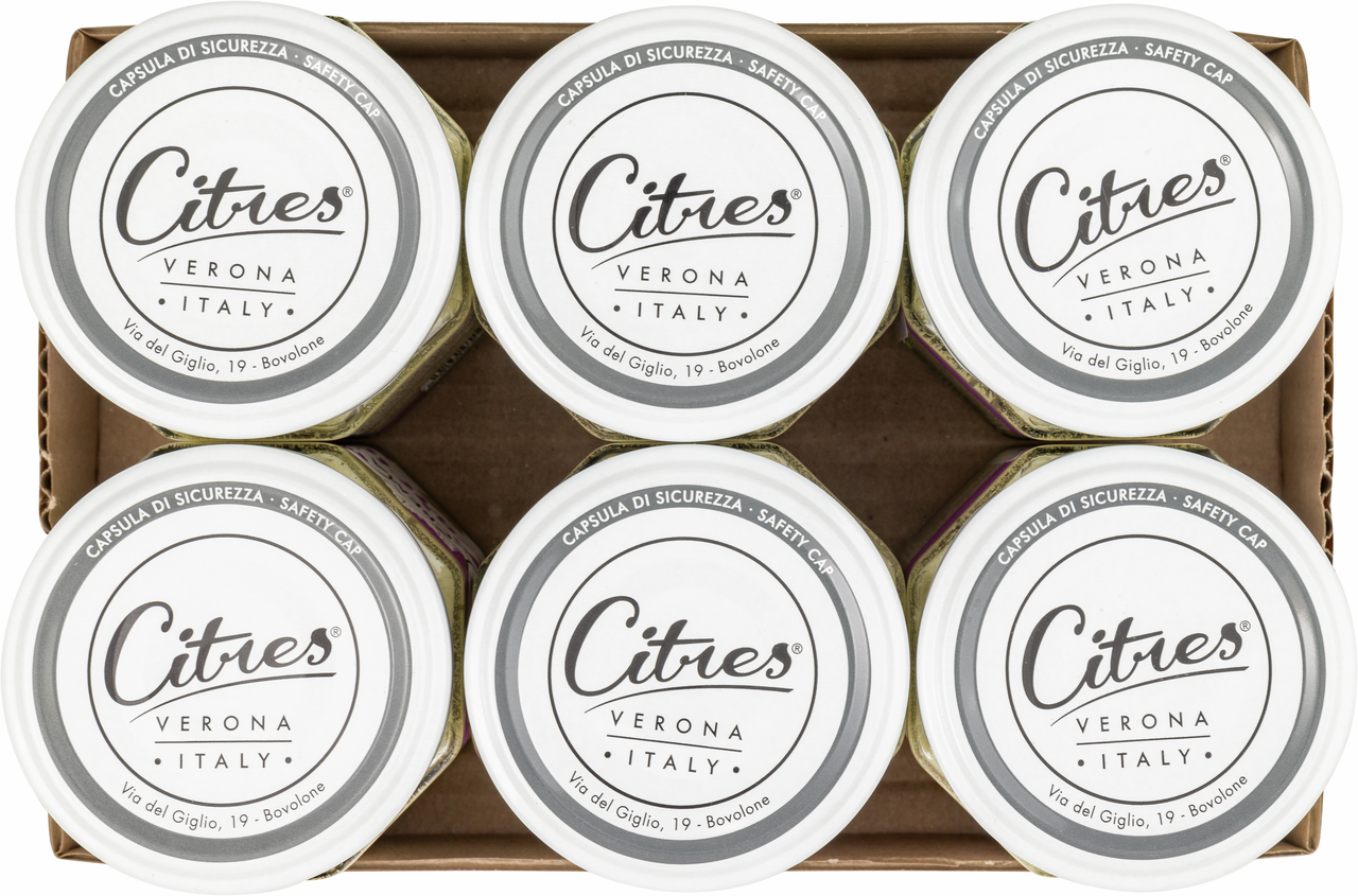 Артишоки 62%, подсолнечное масло рафинированное и дезодорированное, соль, петрушка (1,3%), чеснок (0,4%), регулятор кислотности: лимонная кислота (Е330), антиокислитель: аскорбиновая кислота (Е300), ароматизатор, винный уксус (вино (*), вода). (*) Содержит сульфиты. Не содержит аллергены. Без глютена.