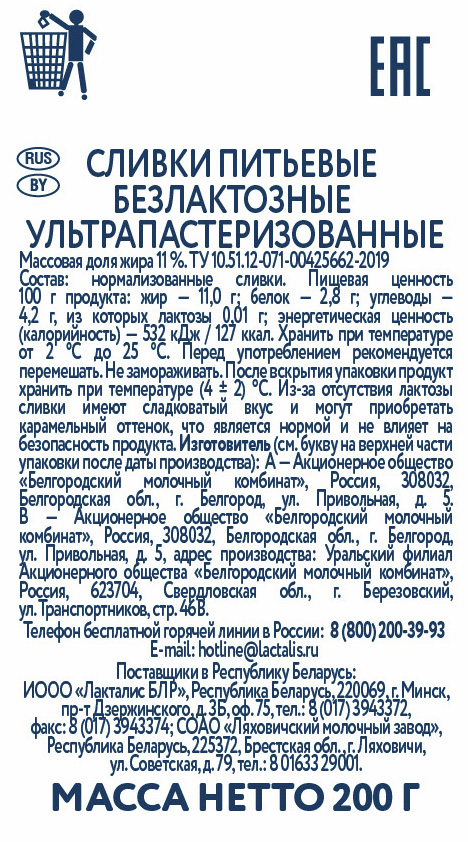 Массовая доля жира 11%. Не содержат лактозу и легко усваиваются, сохраняя полезные и питательные свойства молока. Продукт походит как для людей с непереносимостью лактозы, так и для всей семьи. Также сливки идеальны для тех, кто предпочитает натуральные и полезные продукты