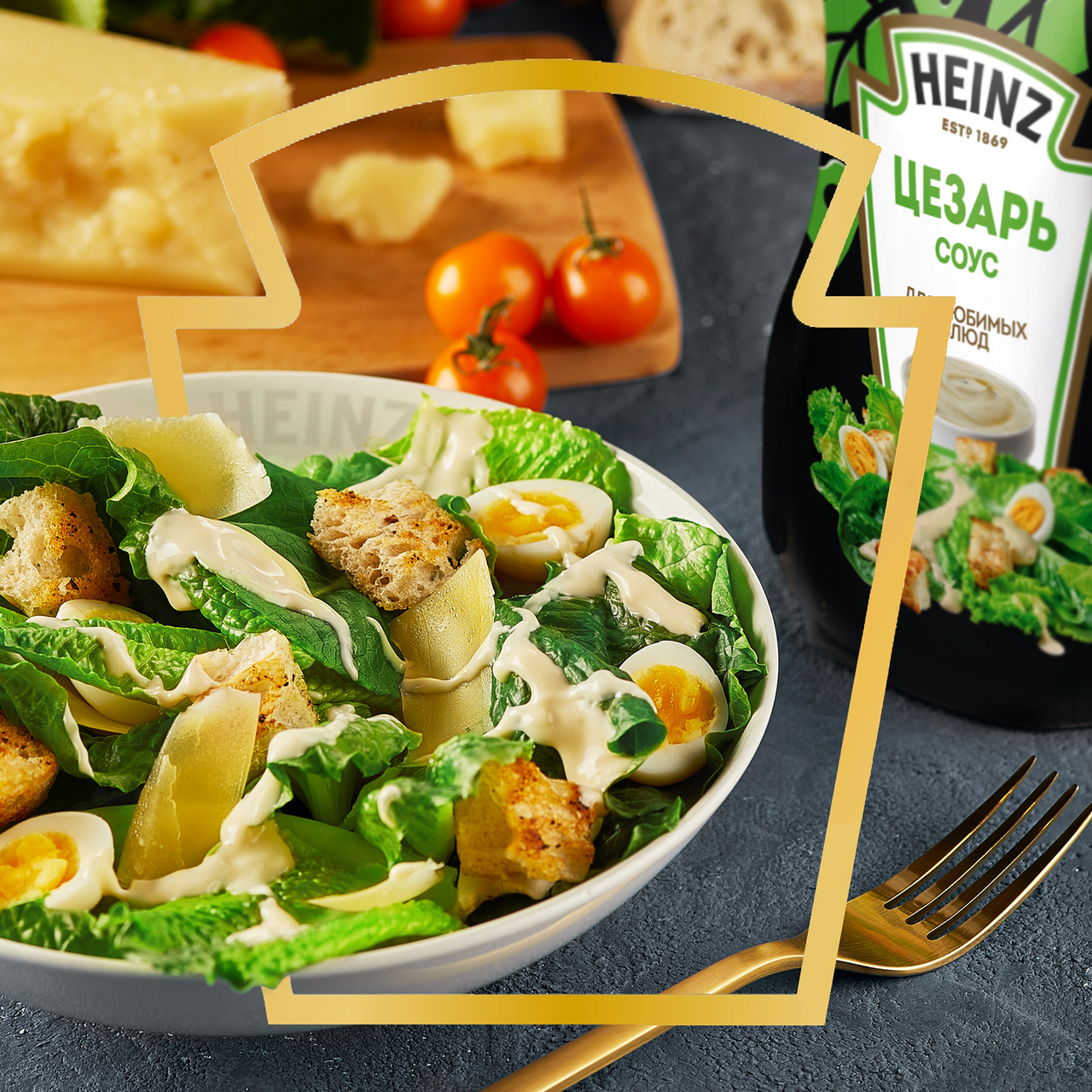 Смешайте салатные листья с нежным соусом Heinz Цезарь, добавьте кусочки сочной куриной грудки, подсушенные в духовке гренки и тертый Пармезан - и гениальное творение итальянской кухни готово без лишних усилий, легко и просто! Эта ароматная заправка изготовлена на основе растительного масла и яичных желтков с добавлением чесночного порошка, лимонного сока и настоящего сыра. Пряная, элегантная, насыщенная - она будет уместна и с другими версиями салата - со стейком из лосося или креветками на гриле.