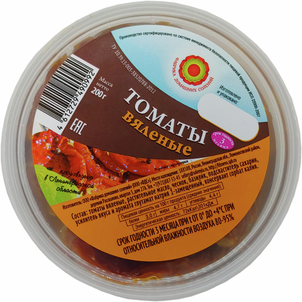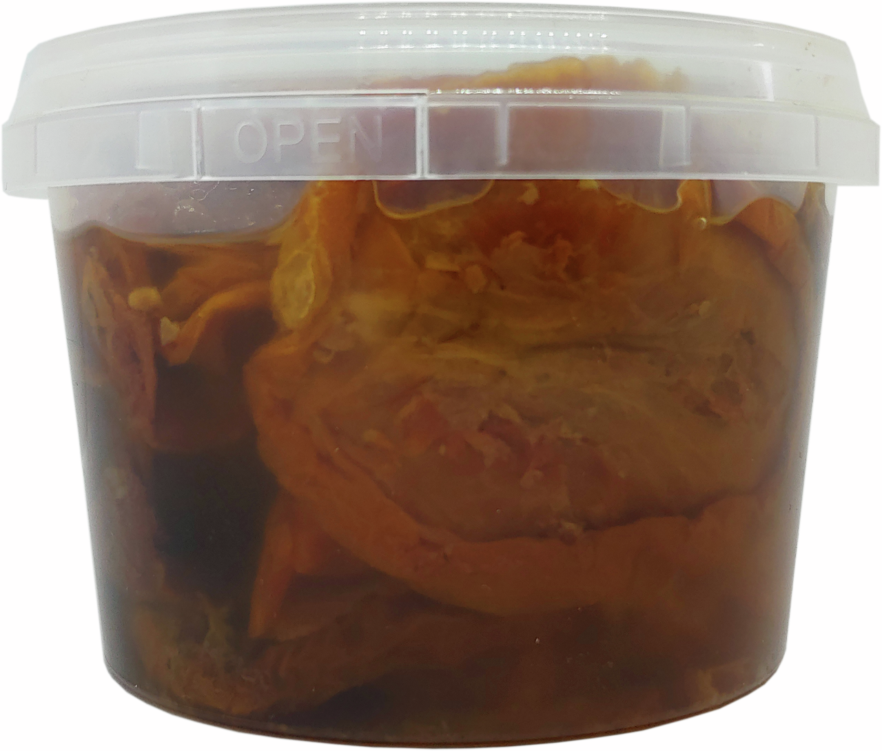 Небольшие спелые помидоры бережно высушены и замаринованы в растительном масле с добавлением уксуса. Специи и чеснок придают продукту пикантность и особый вкус. Вяленые томаты отлично подходят для приготовления брускетт, пасты, мясных деликатесов, пиццы и многого другого. Ими можно разнообразить любые блюда: от яичницы до борща. Вяленые томаты хороши и как самостоятельная закуска. Они отлично гармонируют с ��ырами, оливками, артишоками, зеленью. Вяленые помидоры относятся к продуктам средней калорийности, а значит их в небольшом количестве можно включить в свой рацион питания в период диеты. Такие томаты рекомендуется употреблять при недостатке в организме витаминов и микроэлементов.