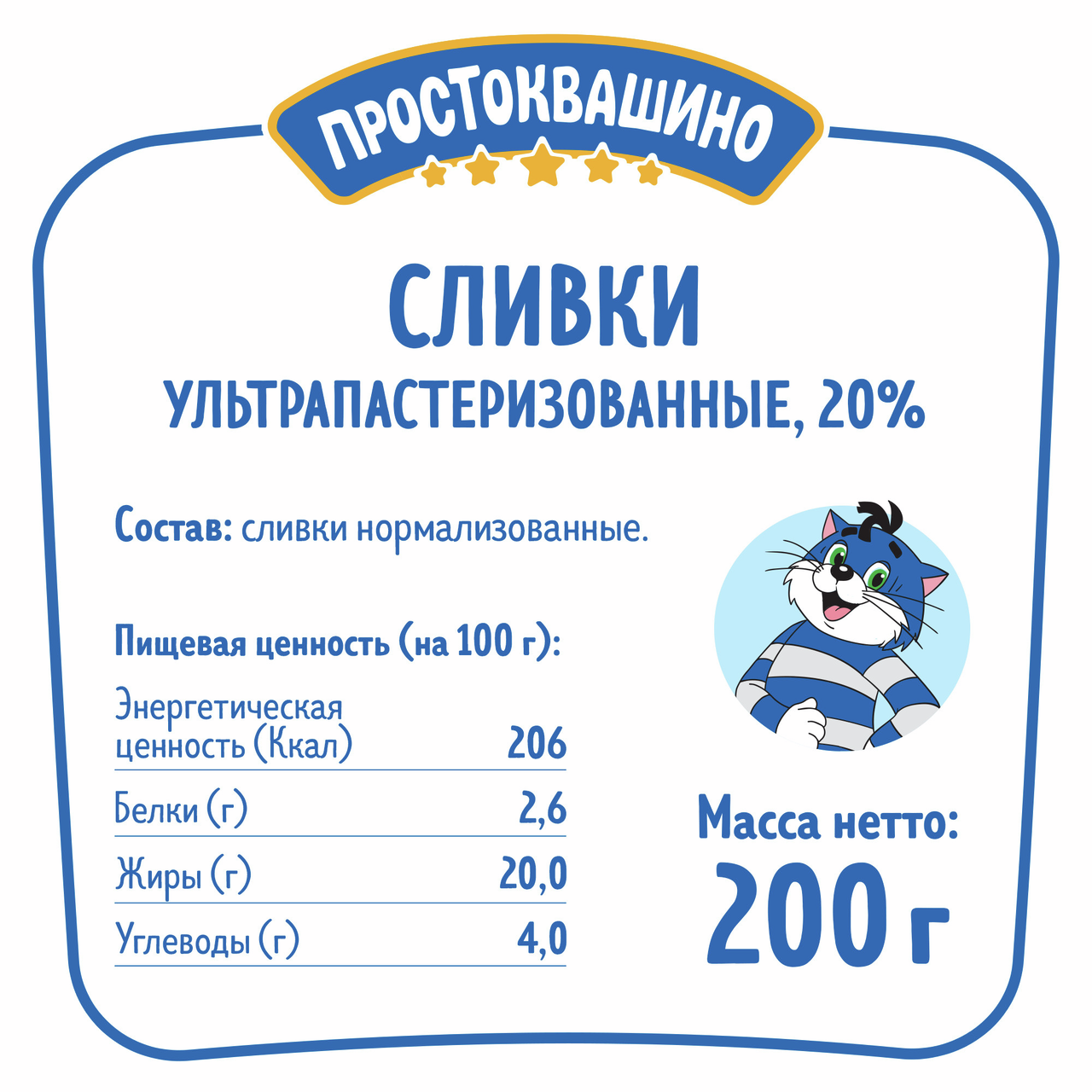 Сливки Простоквашино ультрапастеризованные 20%, 200г