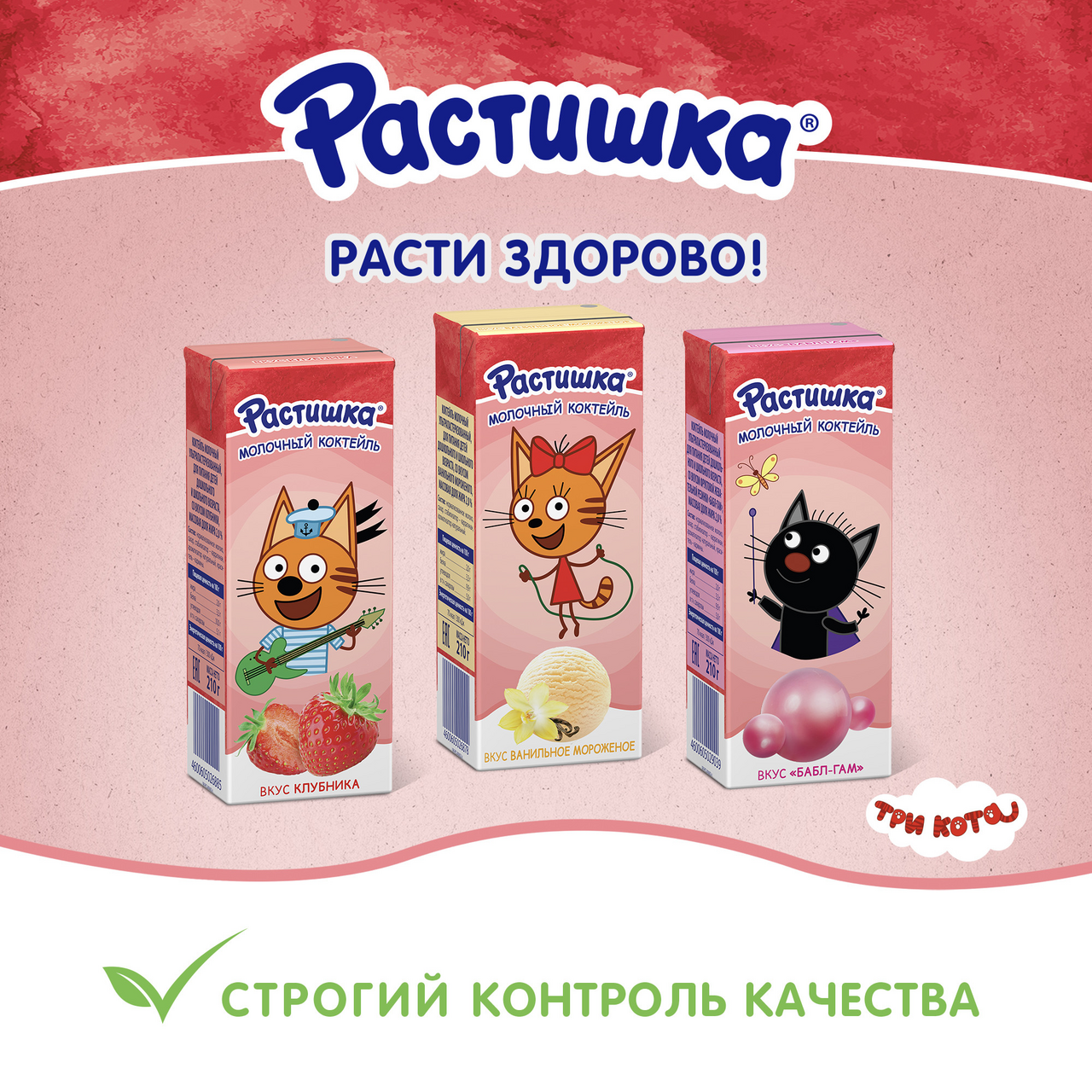 Молочный коктейль "Растишка" для маленьких гурманов старше 3 лет! Любимый вкус, натуральные ингредиенты, удобный дизайн с трубочкой – то, что нужно для полезного перекуса на прогулке, в школе и даже дома. Яркая упаковка с любимыми героями точно порадует ребёнка! Собери всю коллекцию и перекусывай с пользой вместе с Растишкой! *Для питания ребенка раннего возраста, особенно в течение его первого года жизни, предпочтительнее грудное вскармливание. Товар не является полноценным заменителем грудного женского молока. Возрастные и иные ограничения см. на упаковке.
