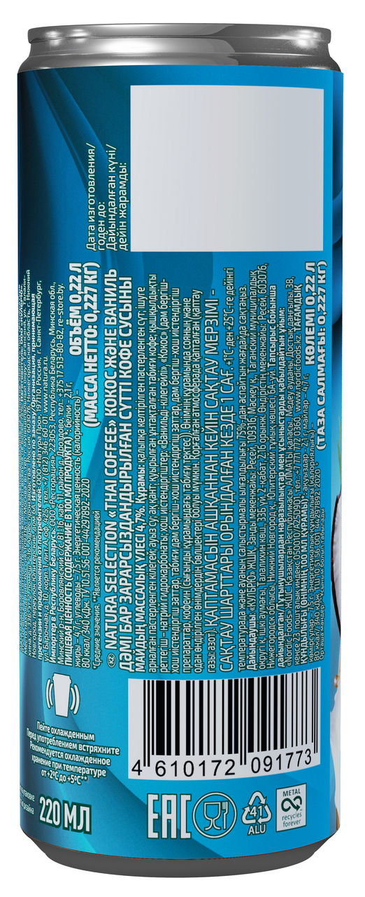 Напиток молочный Natura selection Thai Coffee 4.7%, 220мл
