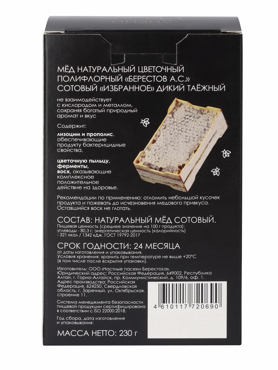 Мед Берестов А.С. Избранное натуральный Сотовый Таежный , 230г
