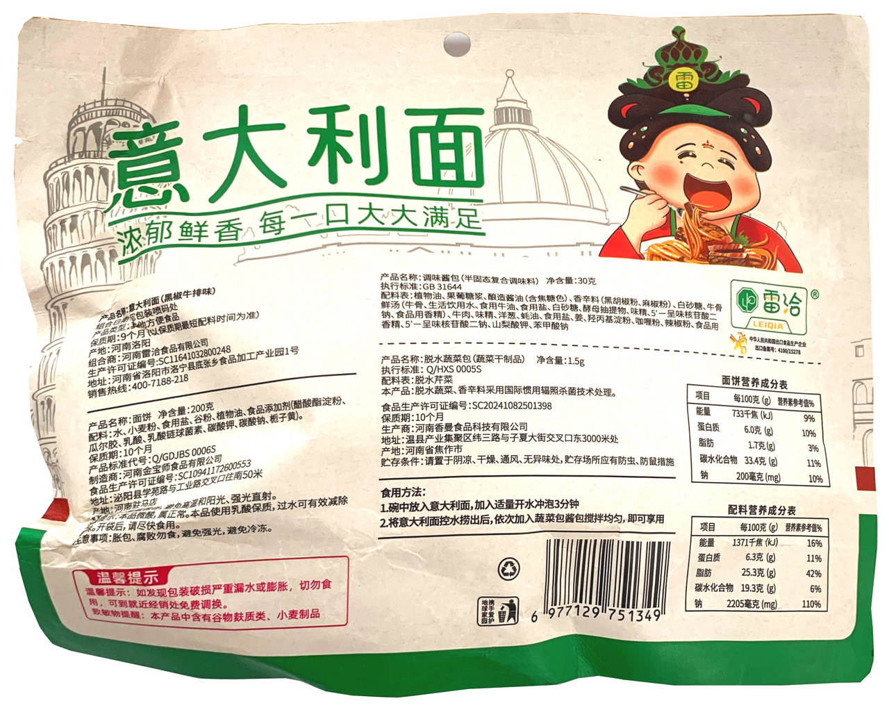 Лапша быстрого приготовления Lei Qia стейк с черным перцем, 231.5г