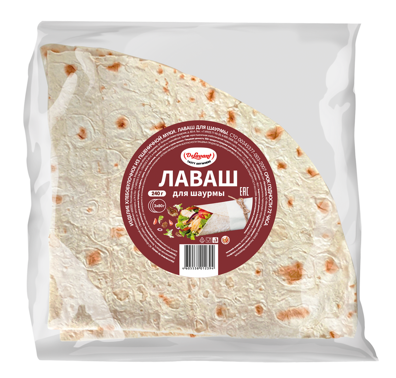 Лаваш - идеальный партнер для твоей шаурмы. Лаваш для шаурмы, 3 листа круглой формы в упаковке - идеальный выбор для тех, кто хочет получить максимум удовольствия от шаурмы в любое время года. Классический национальный бездрожжевой низкокалорийный элитный хлеб круглой формы. Идеально подходит для приготовления шаурмы в домашних условия.